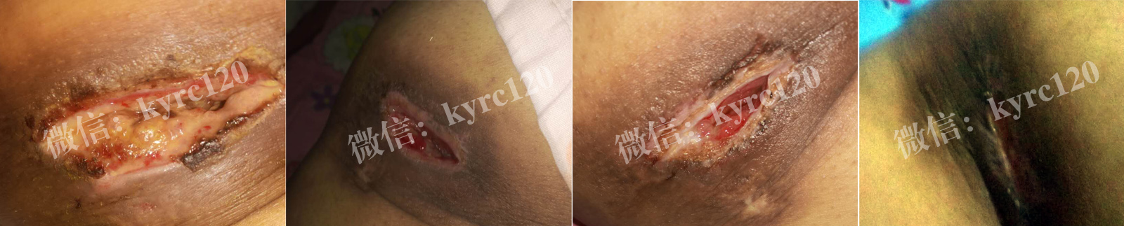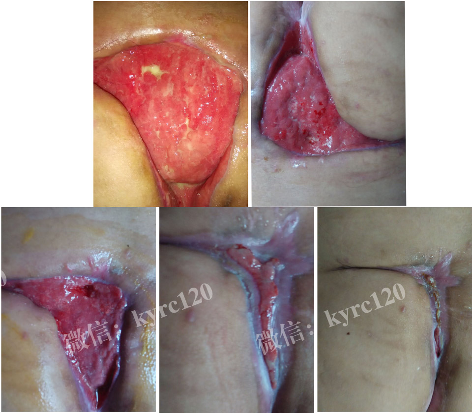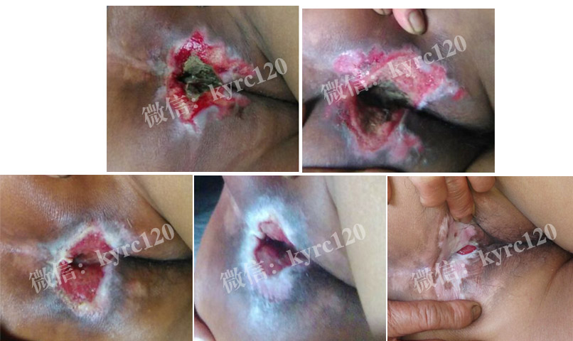 广州白云区的何女士,车祸导致截瘫尾骨部出现褥疮,做过清创后伤口久不愈合。与我处取得联系,采用"煟脓祛腐生肌疗法"根据患者情况制定针对性的指导方法,经过一段时间的治疗患者伤口基本康复。(过程如上图)!